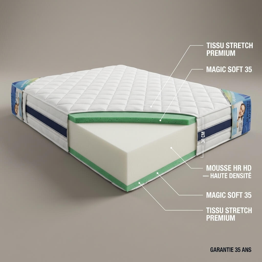 Matelas en mousse HD35 et HR durable et résistant pour une utilisation à long terme de la marque SUBLIMYA 35 Il reste le meilleur rapport qualité prix sur le marché